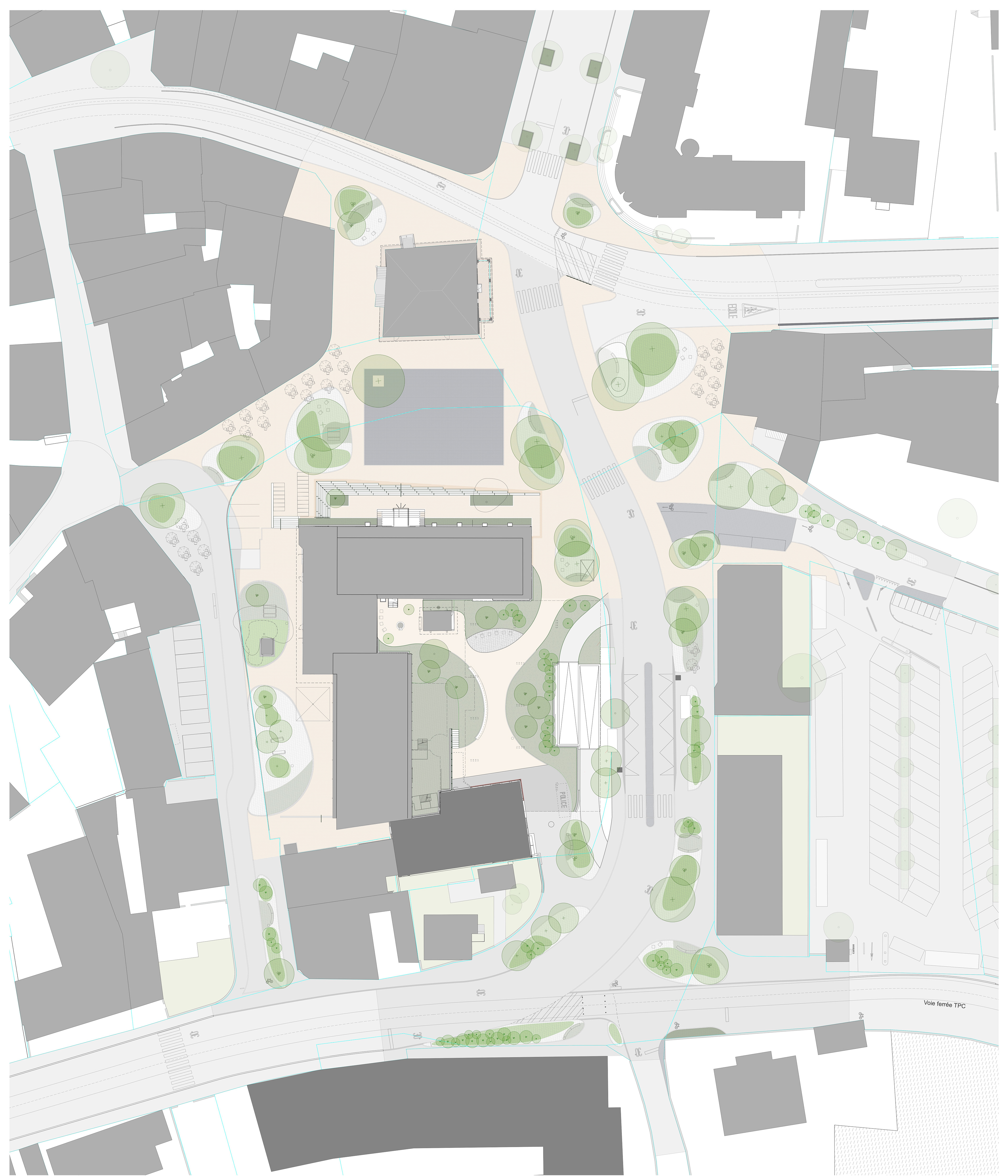 programme: piétonisation, végétation, gestion intégrée des eaux pluviales
